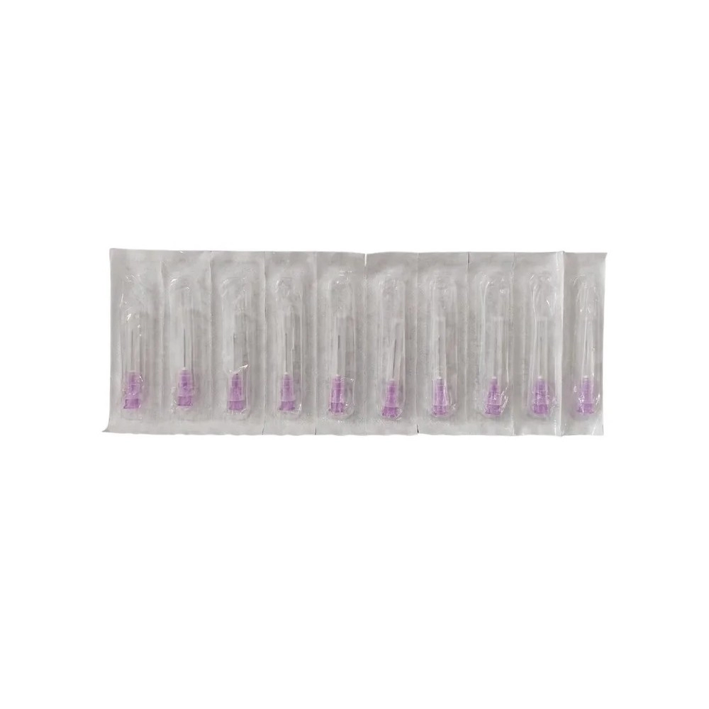 A coloração lilás facilita a identificação rápida do calibre, seguindo padrões internacionais. As agulhas são estéreis, descartáveis e de uso único, garantindo máxima segurança microbiológica.