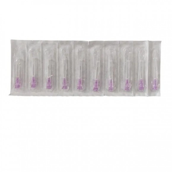A agulha é estéril, descartável e de uso único, sendo embalada individualmente para manter a integridade e a segurança microbiológica até o momento da utilização.