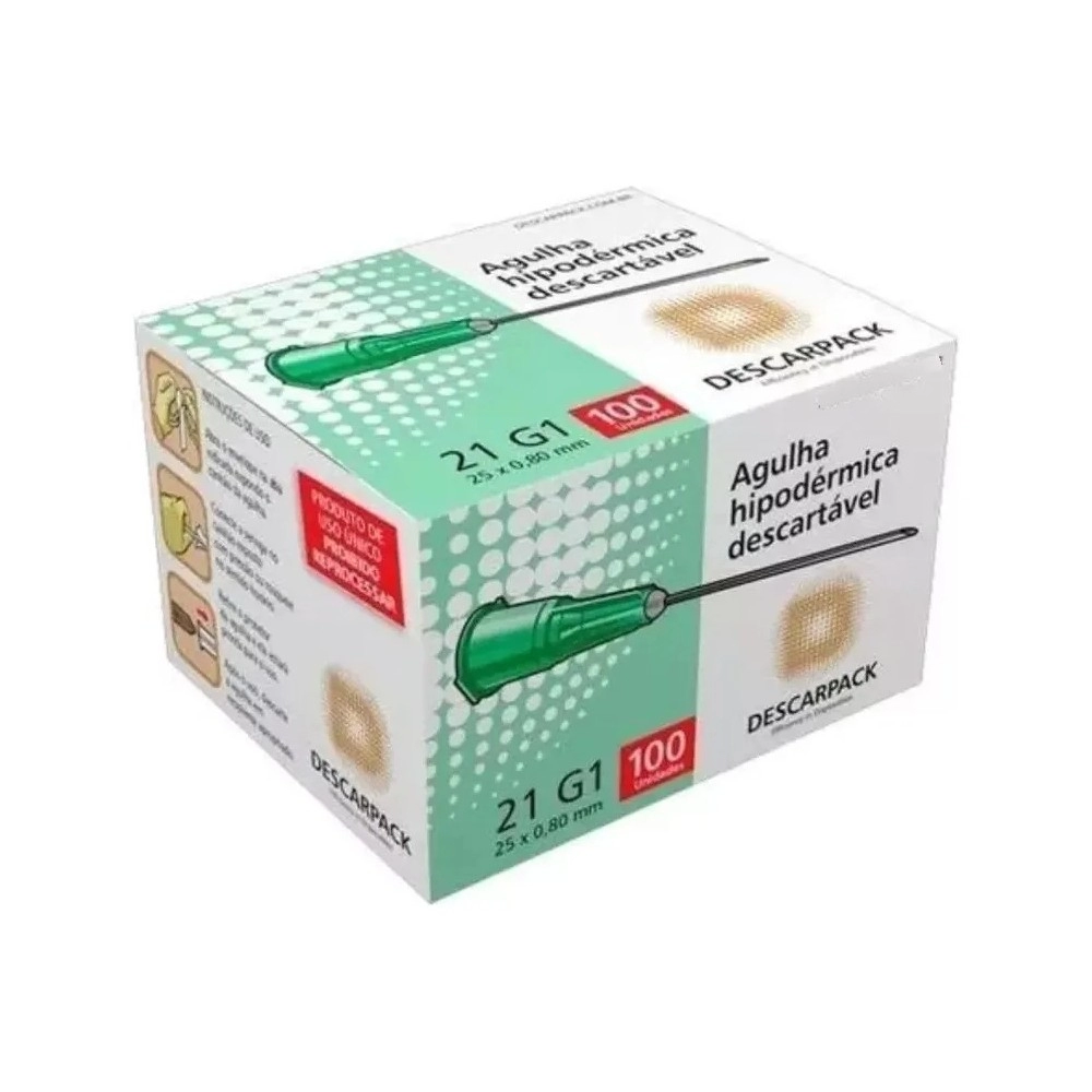 Agulha Verde Estéril Descartável 0,80x40mm – Caixa com 100 Unidades – Descarpack