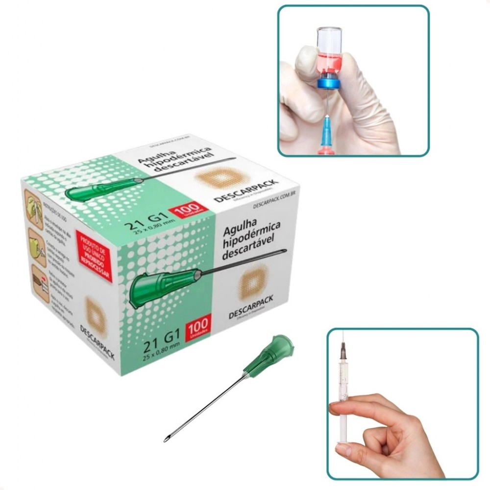 Agulha Verde Estéril Descartável 0,80x30mm com 100 Unidades – Descarpack