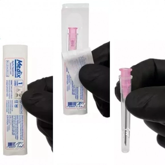 As agulhas são estéreis, descartáveis e de uso único, assegurando máxima segurança e evitando riscos de contaminação.
