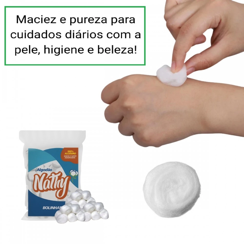 O algodão Nathy não solta fiapos, garantindo maior segurança durante o uso, especialmente em áreas sensíveis da pele. É um produto versátil, essencial no dia a dia e amplamente utilizado por profissionais da saúde, estética e cuidados pessoais.
