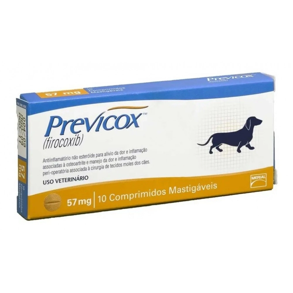 O Previcox 57mg é um medicamento veterinário anti-inflamatório não esteroidal (AINE) de alta eficácia, indicado para cães, sendo amplamente utilizado no controle da dor e inflamação, especialmente em casos de osteoartrite (doença articular degenerativa) e no pós-operatório de cirurgias ortopédicas e de tecidos moles.