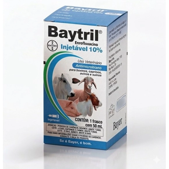 • 1 Frasco de Baytril® Injetável 10% Enrofloxacino 50mL – Elanco