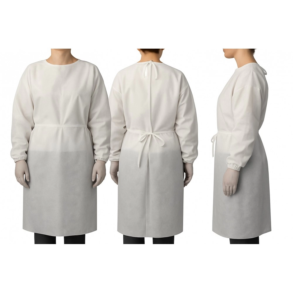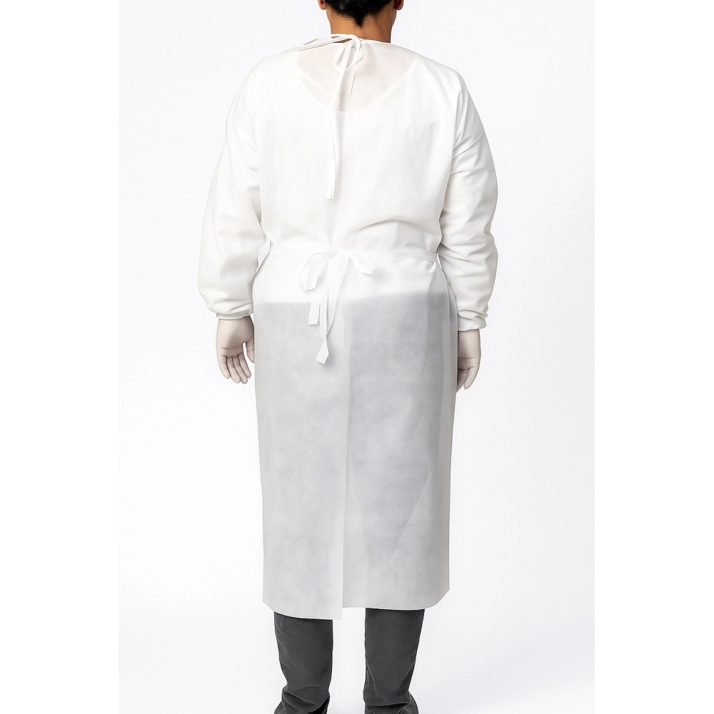 Com Mangas longas e punho elásticos, o avental proporciona melhor ajuste ao corpo e liberdade de movimentos, evitando a exposição da pele e das roupas pessoais. O fechamento posterior com amarração na cintura e na gola permite ajuste confortável e firme, ideal para longos períodos de uso.