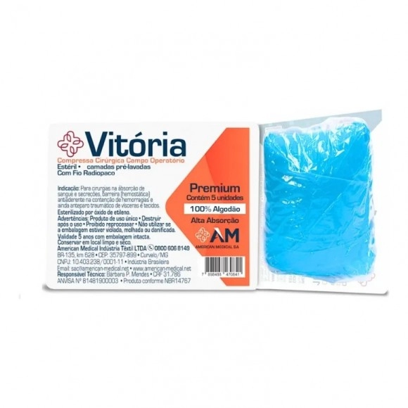 Campo Operatório Estéril Algodão 10x9cm com 5 Unidades – America Medical