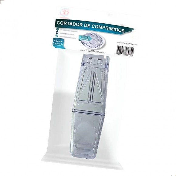 O Cortador de Comprimidos Transparente – 3B foi desenvolvido para facilitar a divisão precisa de comprimidos, garantindo praticidade, segurança e melhor controle da dosagem conforme orientação médica ou veterinária.