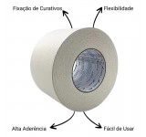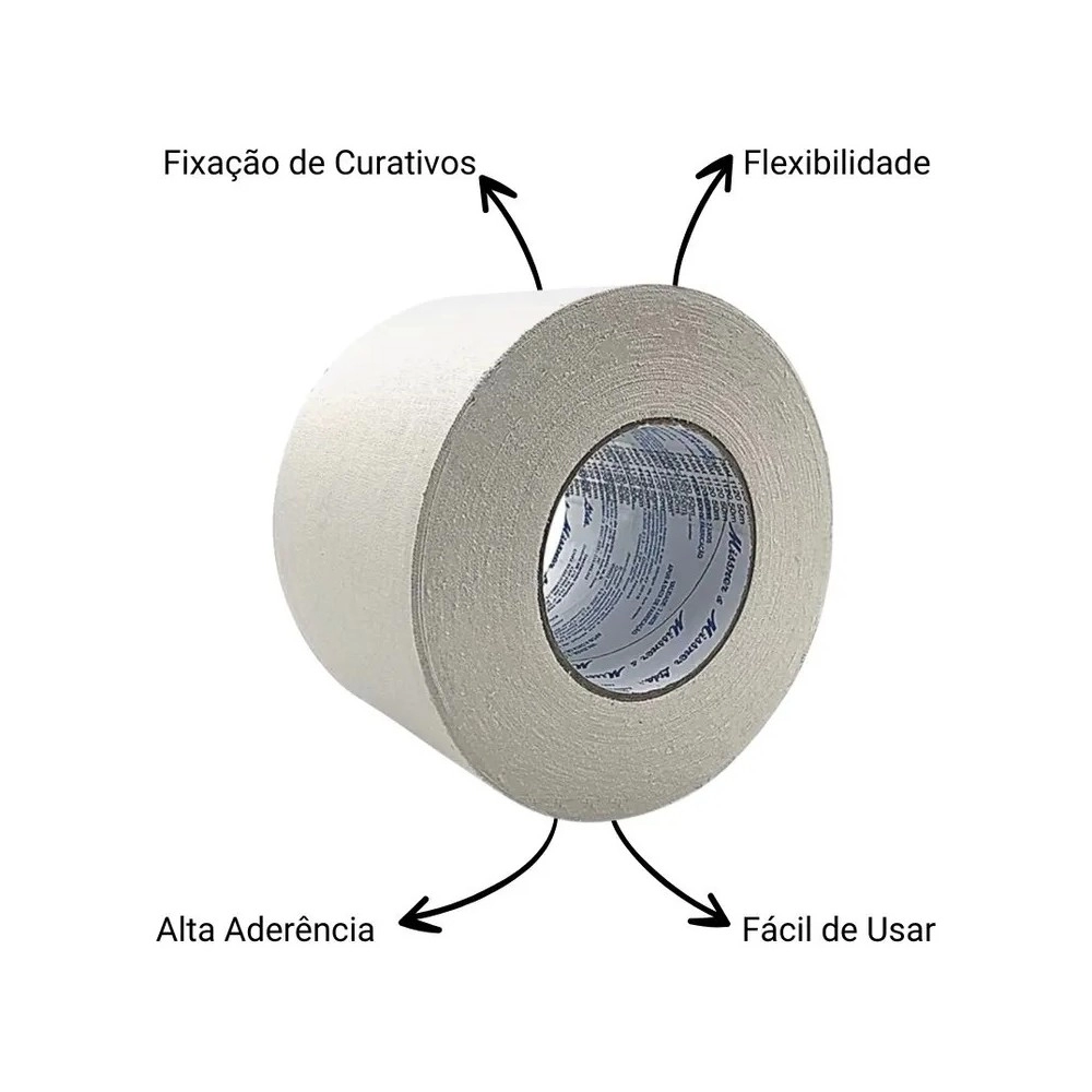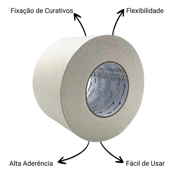Fabricado em tecido 100% algodão, o esparadrapo proporciona conforto à pele e boa respirabilidade, reduzindo o risco de irritações. Sua camada adesiva de alta qualidade garante fixação eficiente, enquanto a característica impermeável protege o local contra líquidos e agentes externos.