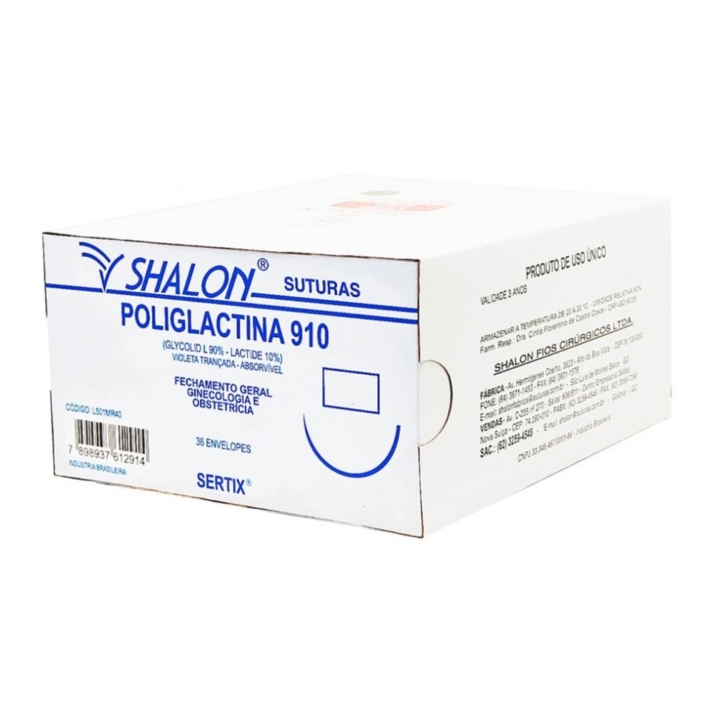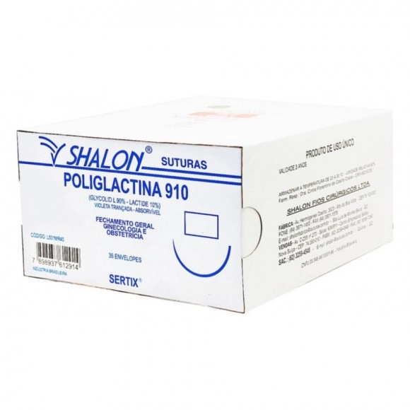 Fio Cirúrgico Poliglactina 910 USP 0 Comprimento 70cm Curva 1/2 com Agulha Cilíndrica 4,0cm – Shalon