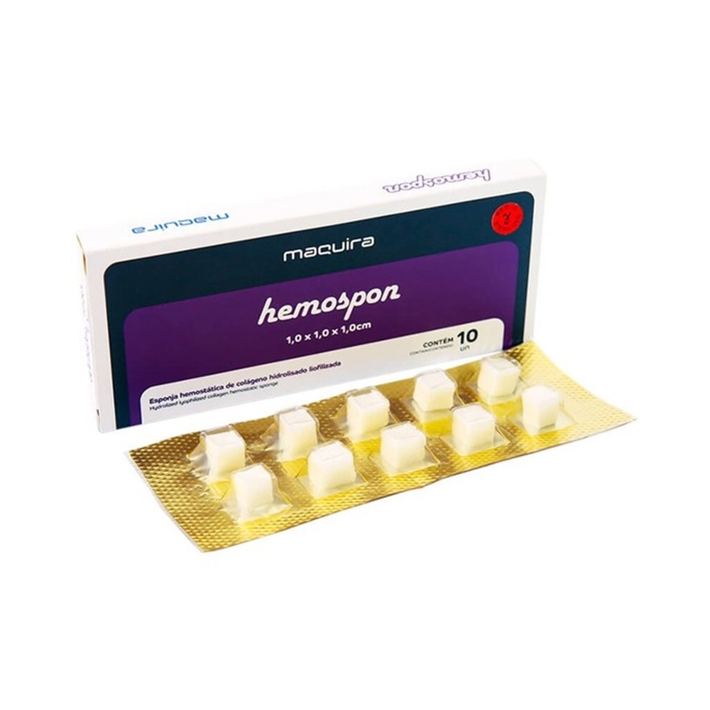 - 1 Esponja Hemostática de Colágeno Hemospon 1,0 x 1,0 x 1,01 cm – Maquira