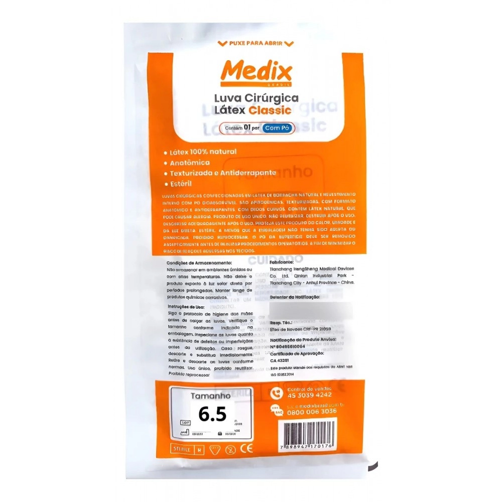 Luva Descartável Cirúrgica Estéril Com Pó Tamanho 6,5 – Medix