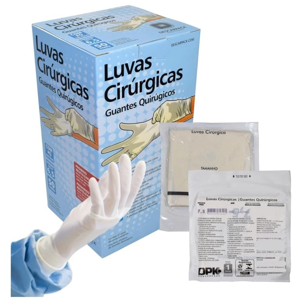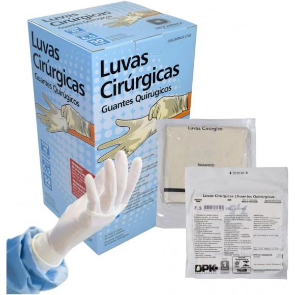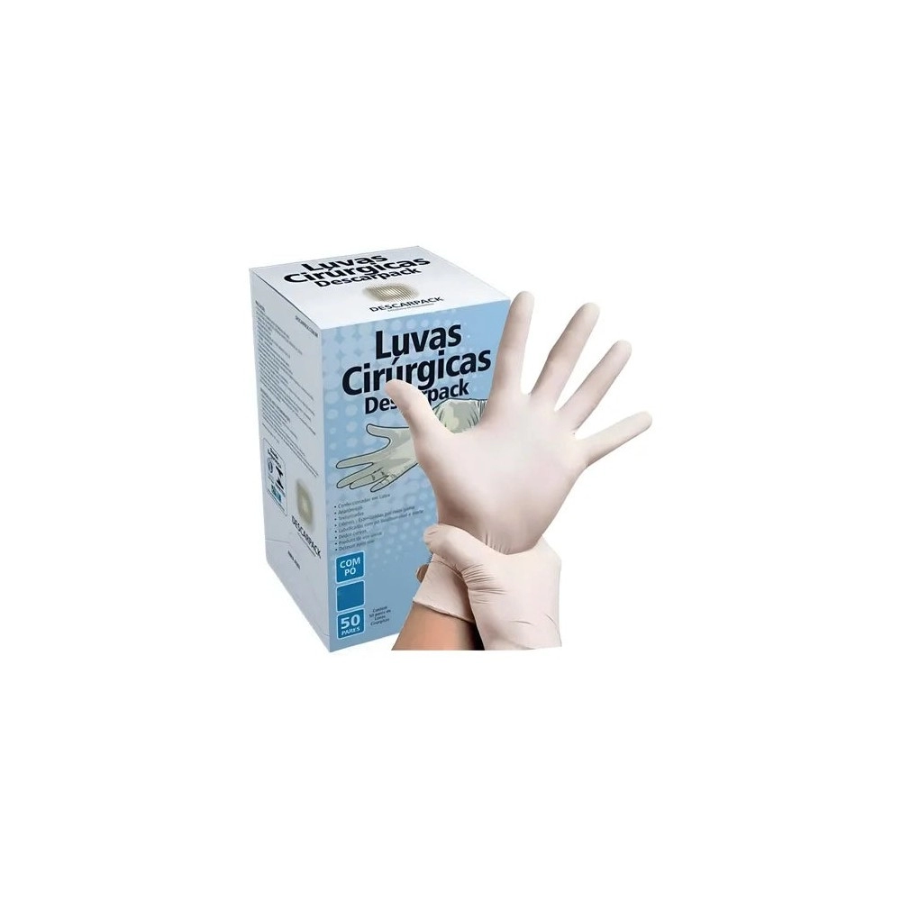 - Par de Luvas Cirúrgicas de Látex com Pó – Tamanho 7.0 – Descarpack