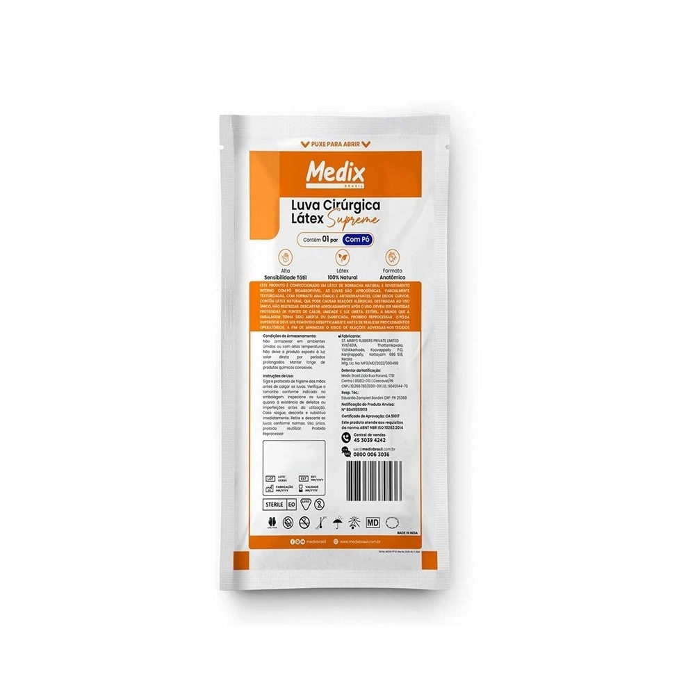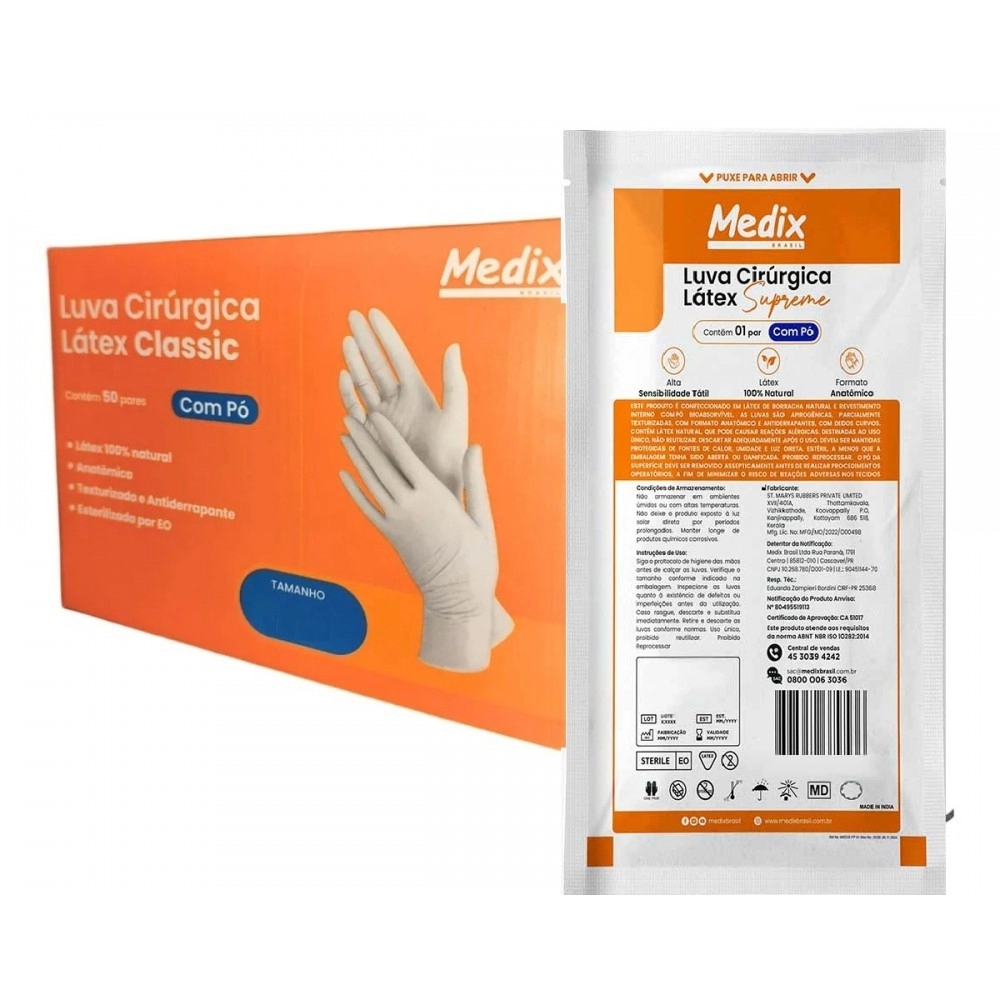 - Par de Luva Cirúrgica Descartável Estéril de Látex Com Pó Tamanho 7.0 – Medix Brasil
