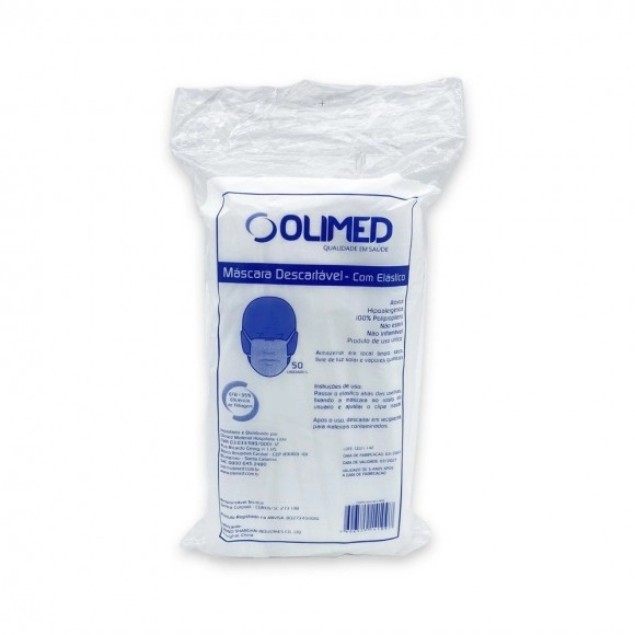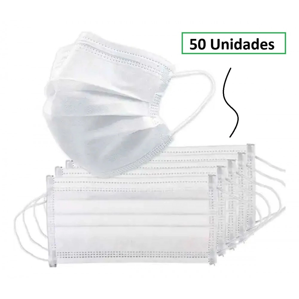 - 50 Máscaras Descartáveis Triplas com Elástico – Branca – Glomed