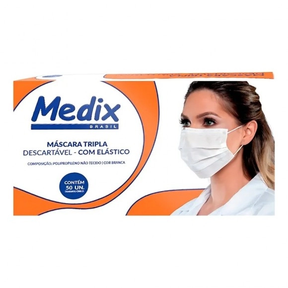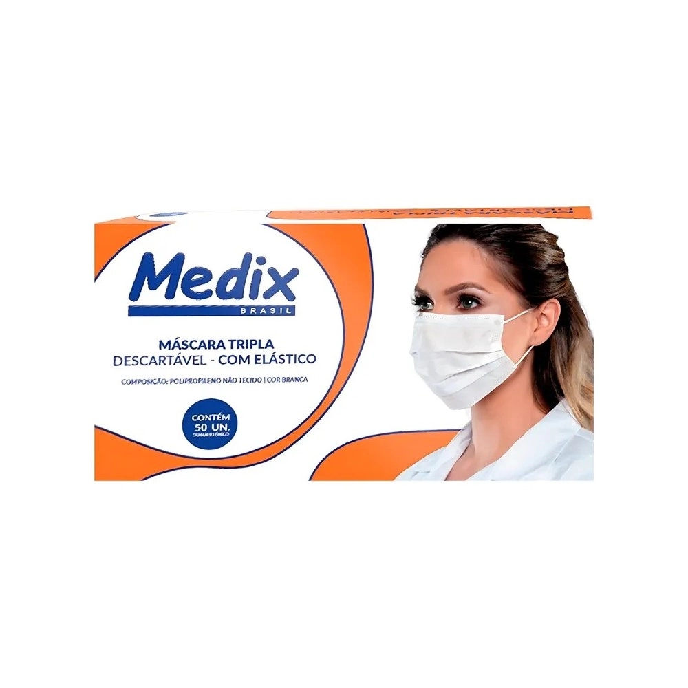 - 50 Máscaras Descartáveis com Elástico Tripla Camada – Medix