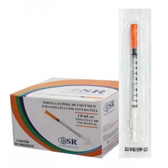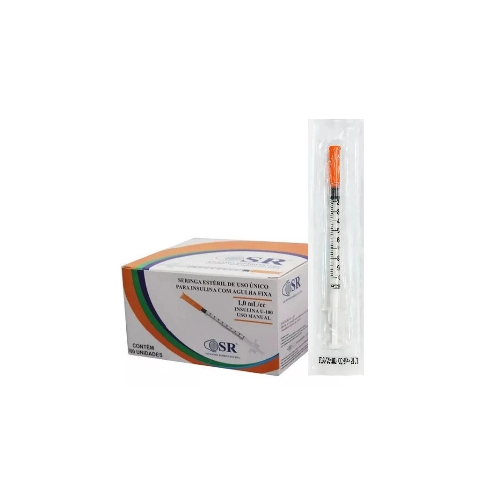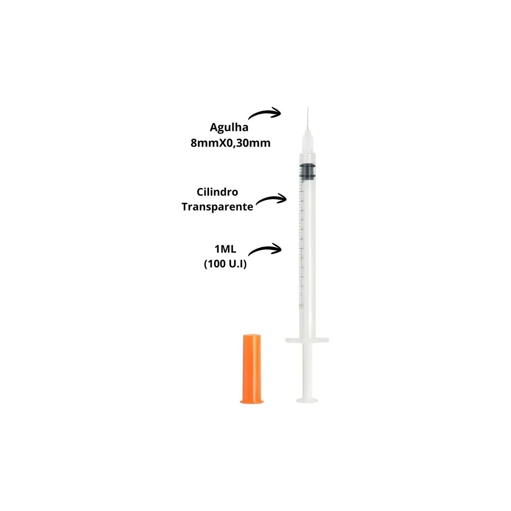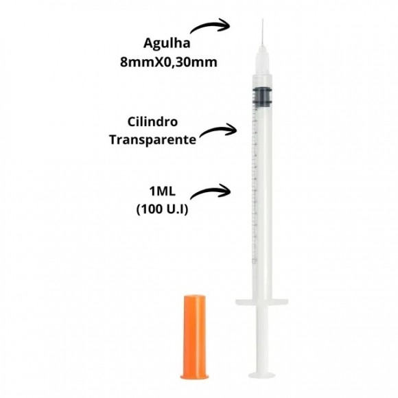 • 1 Seringa Descartável 1mL com Agulha Fixa 8mm x 0,30mm – SR