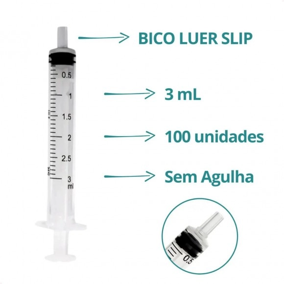 • 1 Seringa Descartável 3mL Bico Slip Sem Agulha – SR