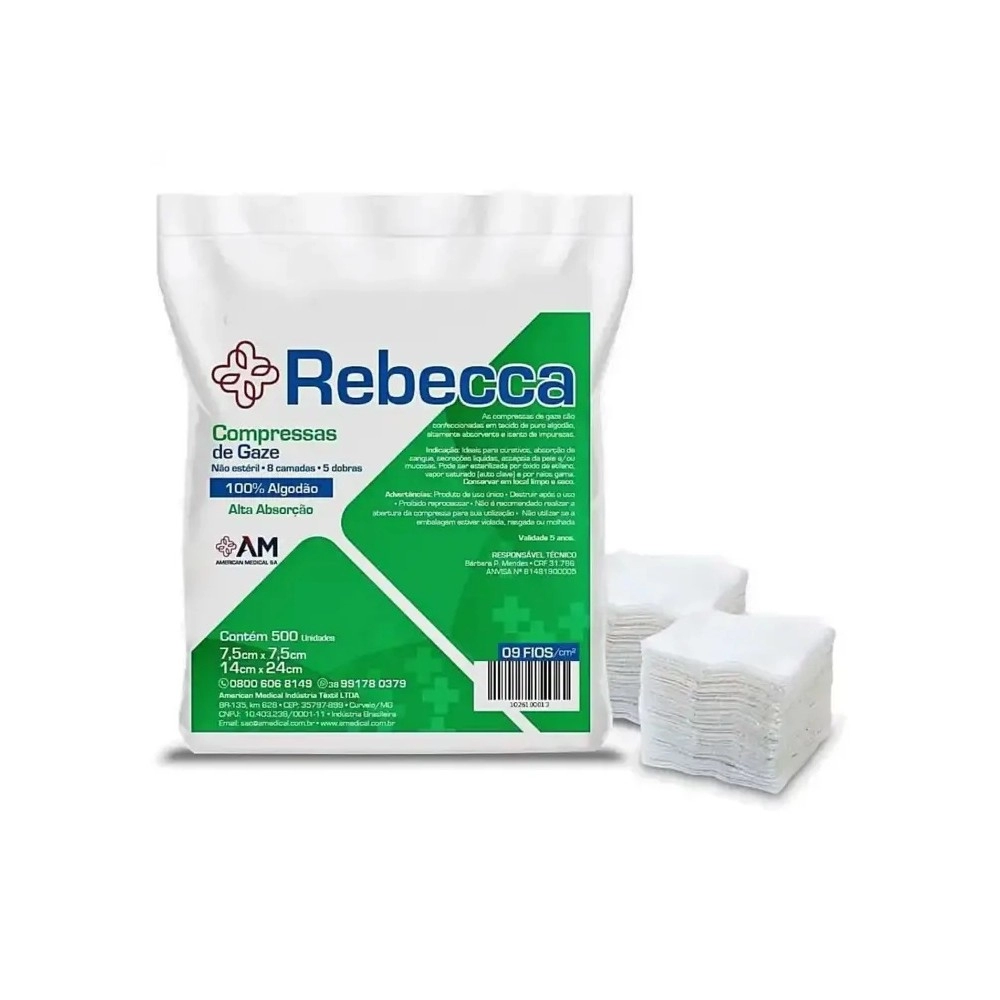 A Gaze Curativo Compressa 13 fios 7,5x7,5 cm Rebecca - America Medical Foi cuidadosamente desenvolvido para entregar máxima eficiência, segurança e excelente capacidade de absorção em procedimentos de limpeza, cobertura e proteção de ferimentos. Produzido em 100% algodão de alta qualidade, é atóxica, apirogênica e possui uma textura extremamente macia, garantindo conforto ao paciente e alto desempenho ao profissional.