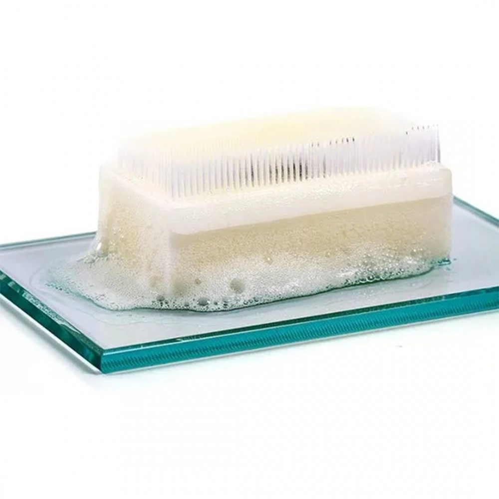 A escova conta com cerdas macias que auxiliam na remoção de sujidades sem agredir a pele, além de reservatório com solução degermante pronta para uso. Seu design anatômico proporciona praticidade, conforto e eficiência durante a assepsia, sendo amplamente utilizada em hospitais, clínicas, consultórios e centros cirúrgicos.