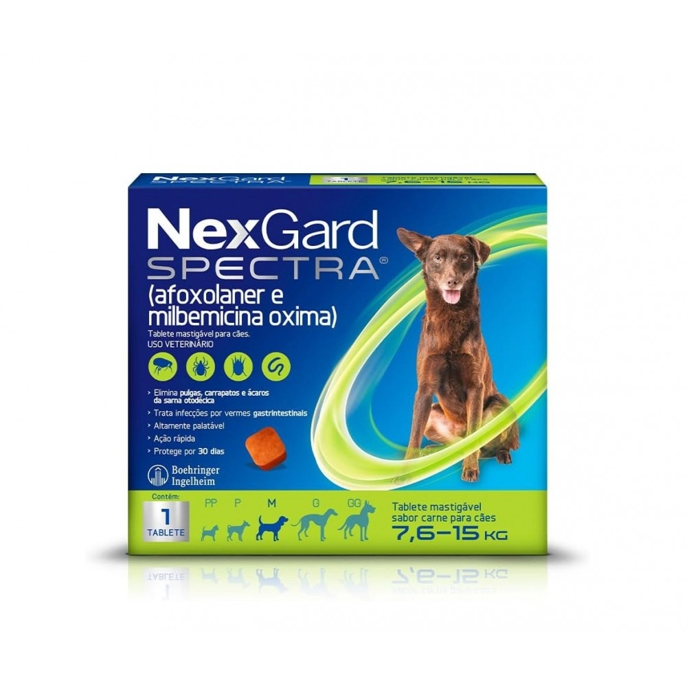 • 1 NexGard Spectra Antipulgas e Vermífugo para Cães de 7,6 a 15kg 1 Tablete - Boehringer