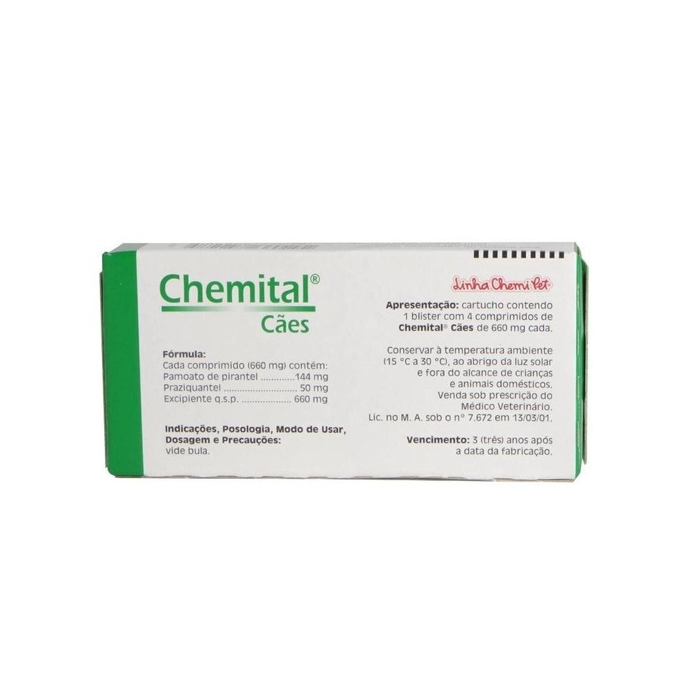 Chemital Vermífugo para Cães 10kg com 4 Comprimidos - Chemitec