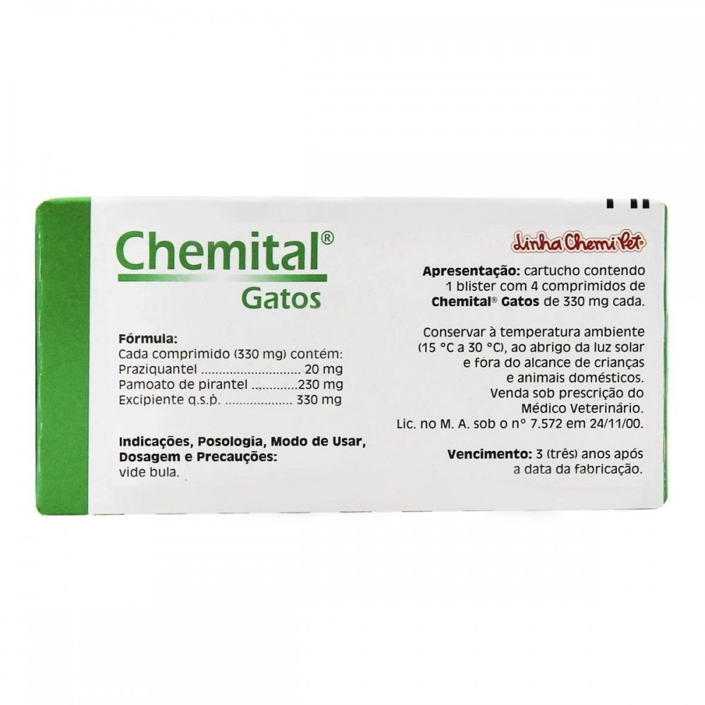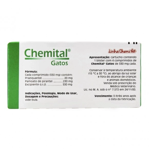 Chemital Vermífugo para Gatos com 4 Comprimidos - Chemitec