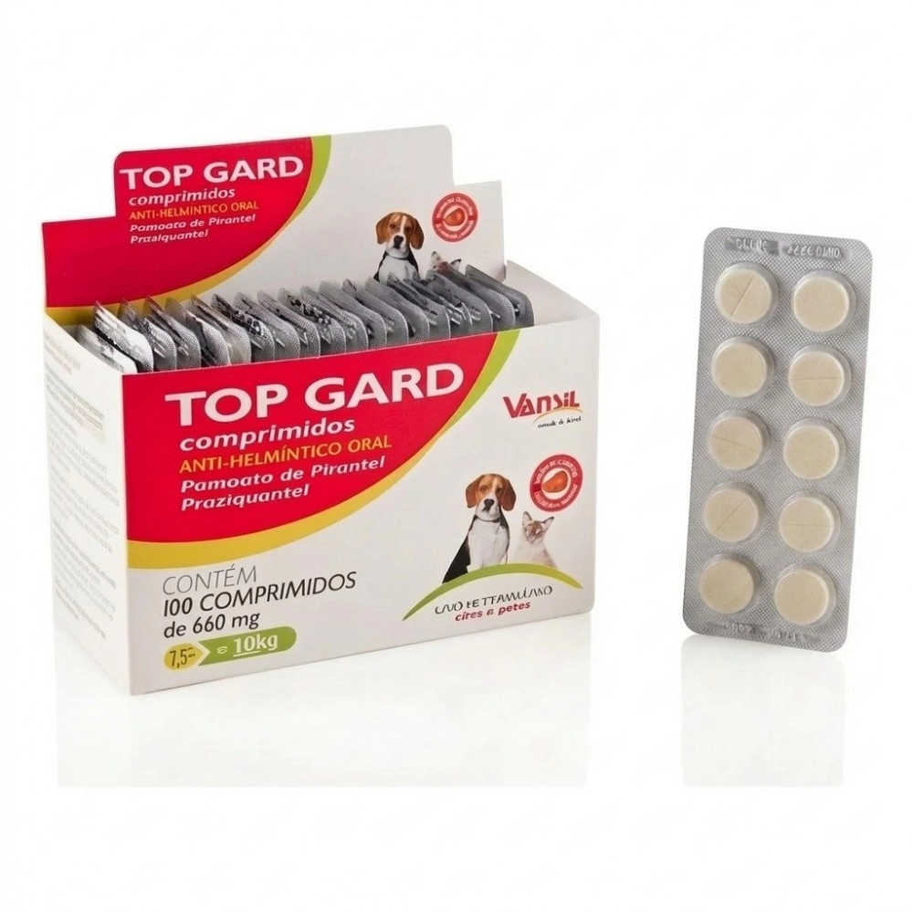 Top Gard Vermífugo Para Cães e Gatos 660mg 100 Comprimidos - Vansil