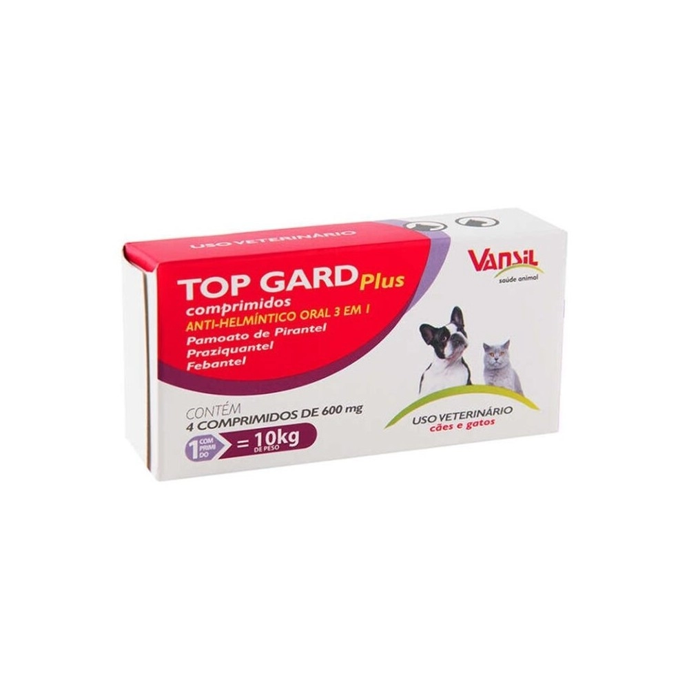 O Top Gard Plus Vermífugo 600mg é um medicamento veterinário antiparasitário indicado para o controle e tratamento de verminoses intestinais em cães e gatos, oferecendo uma ação ainda mais completa no combate aos parasitas internos.