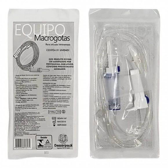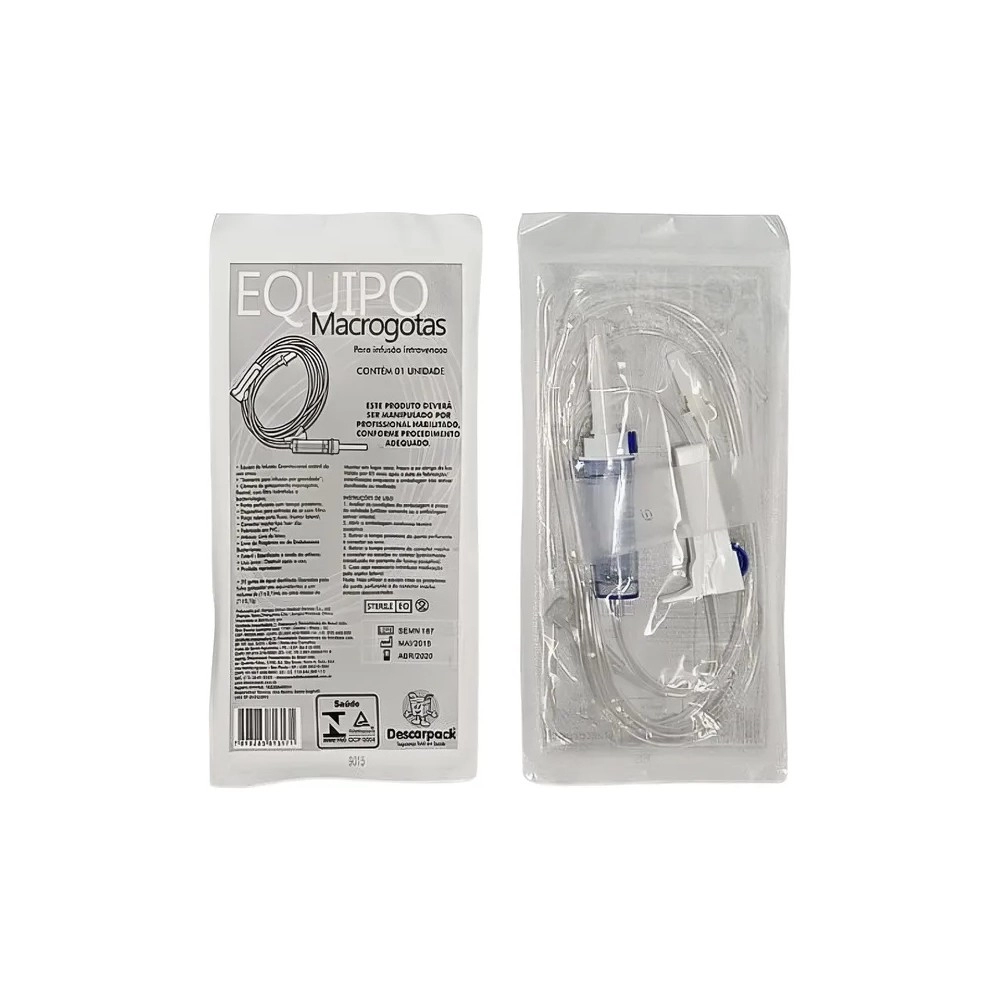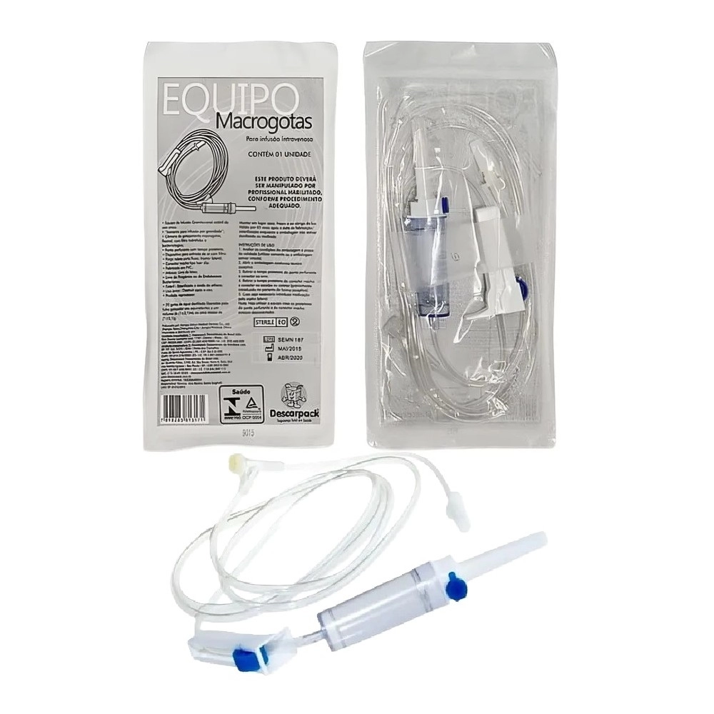 O Equipo Macrogotas Descarpack foi desenvolvido para a administração endovenosa de medicamentos e soluções, garantindo um fluxo seguro, contínuo e confiável em hospitais, clínicas, pronto-atendimentos e procedimentos veterinários. Sua função é realizar a ligação entre o dispositivo venoso periférico e o frasco ou bolsa de infusão, permitindo uma transferência eficiente e controlada do líquido administrado.