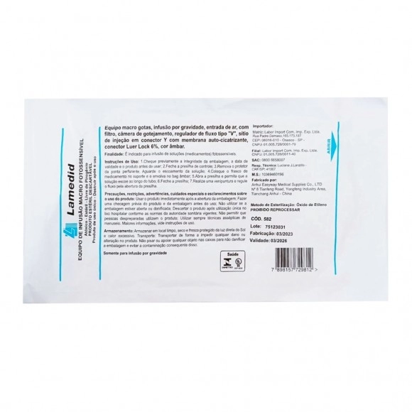 O Equipo Macrogotas Fotossensível com Filtro e Injetor Lateral – Lamedid foi desenvolvido para garantir segurança, precisão e fluxo contínuo na administração endovenosa de soluções e medicamentos. O tubo fotossensível oferece proteção contra a luz, sendo ideal para medicamentos sensíveis à luminosidade, preservando sua eficácia durante toda a infusão.