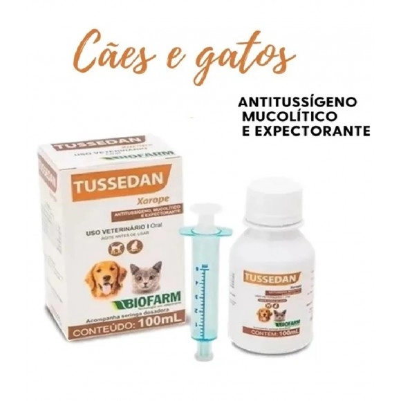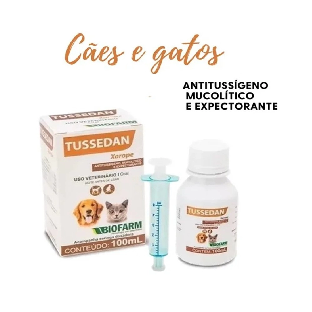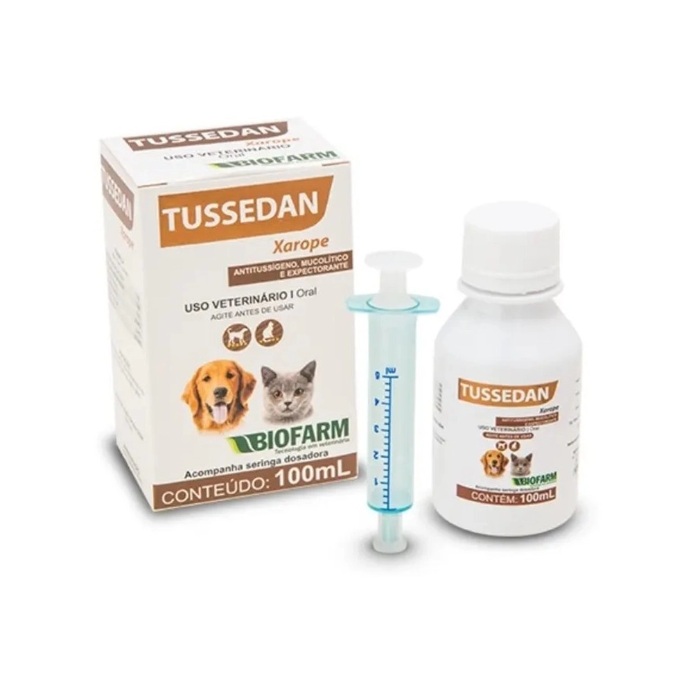 O Tussedan Xarope 100ml é um medicamento veterinário indicado para auxiliar no tratamento de tosse e afecções respiratórias em cães e gatos, proporcionando alívio dos sintomas e contribuindo para o bem-estar dos animais.