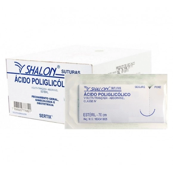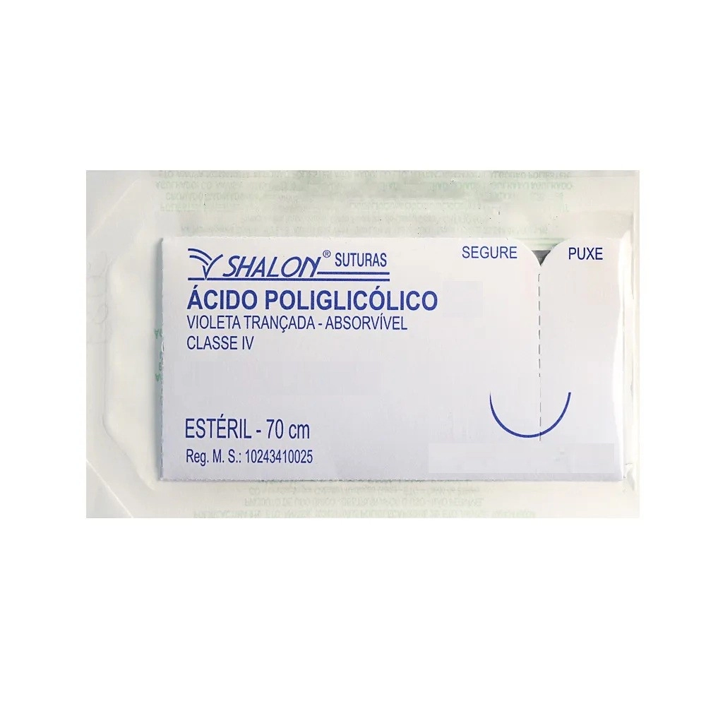 - Fio de Sutura Ácido Poliglicólico 3-0 com Agulha 3/8 Cilíndrica 3,0cm – 70cm