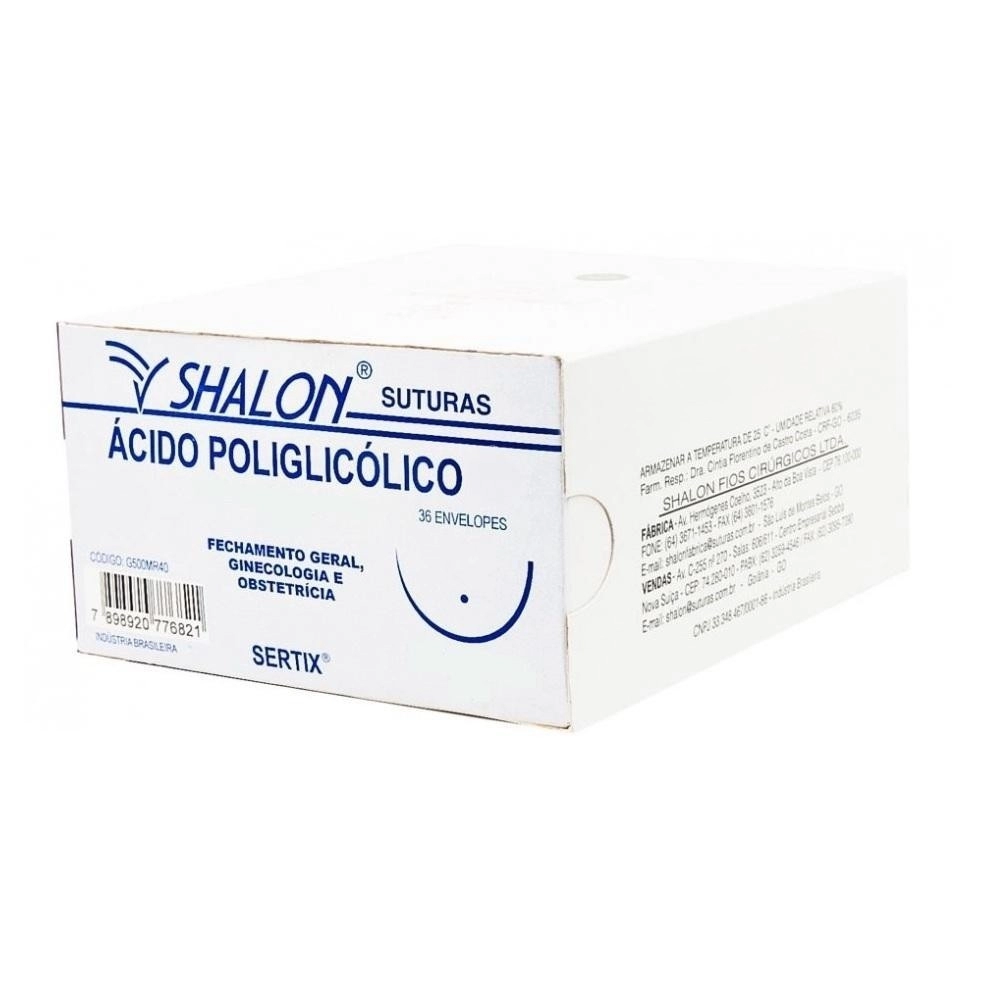 Fio Cirúrgico de Ácido Poliglicólico USP 2-0 Comprimento 70cm com Agulha Curva 1/2 Cilíndrica 3,5cm – Shalon
