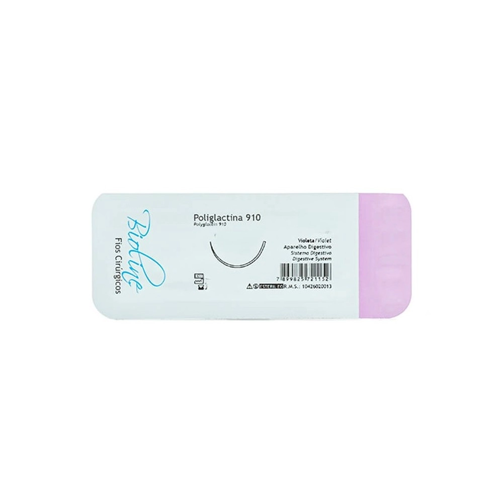 Fio de Sutura Poliglactina 910 USP 2-0 70cm com Agulha Curva 1/2 3,0cm – Bioline Fios