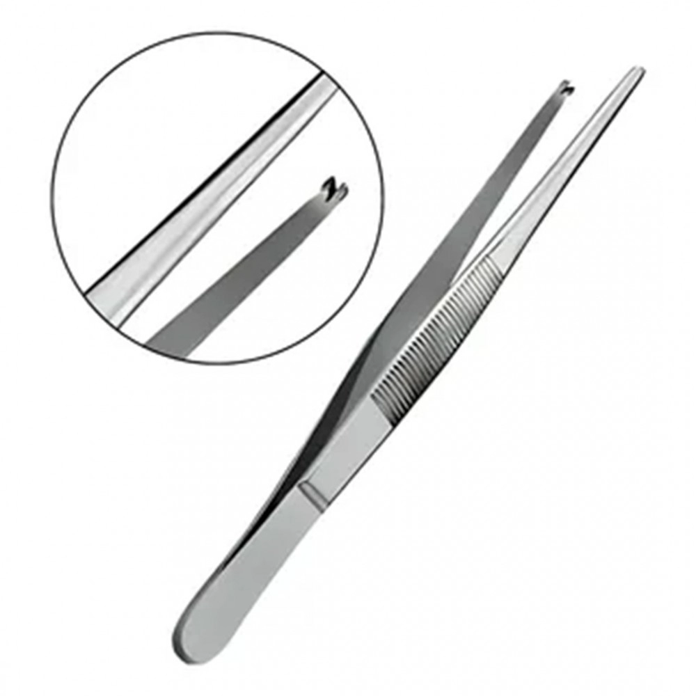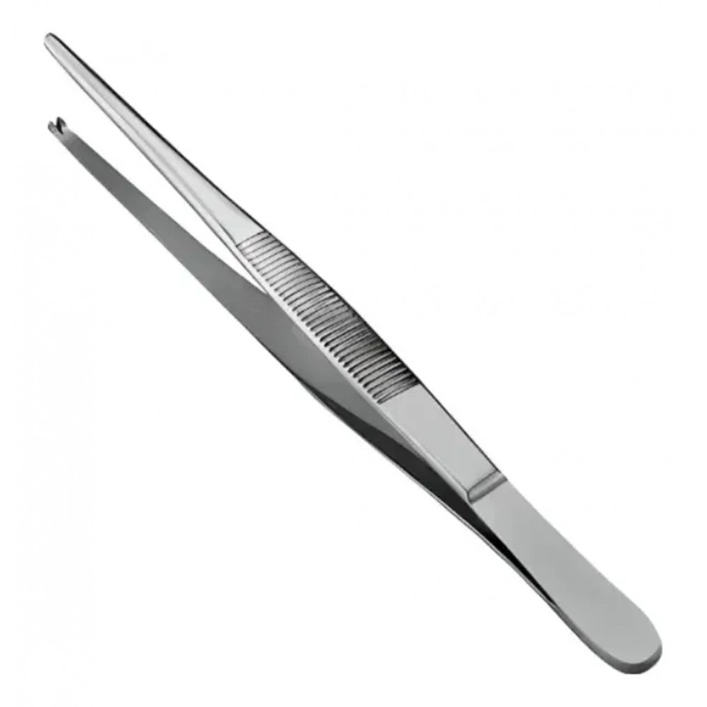 Seu design anatômico proporciona pegada confortável e controle preciso, enquanto o dente de rato na extremidade garante maior aderência e estabilidade, especialmente na manipulação de tecidos mais firmes, reduzindo o risco de escorregamento durante o procedimento.
