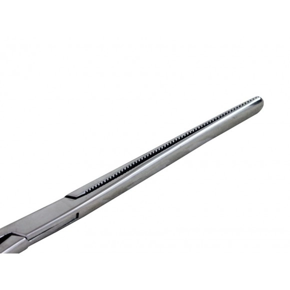 Fabricada em aço inoxidável de alta qualidade, a pinça oferece alta resistência, durabilidade e segurança, sendo totalmente autoclavável, conforme os protocolos de biossegurança. Seu design reto e atraumático, aliado ao comprimento de 18 cm, proporciona controle preciso, firmeza e delicadeza, minimizando riscos de lesão tecidual.