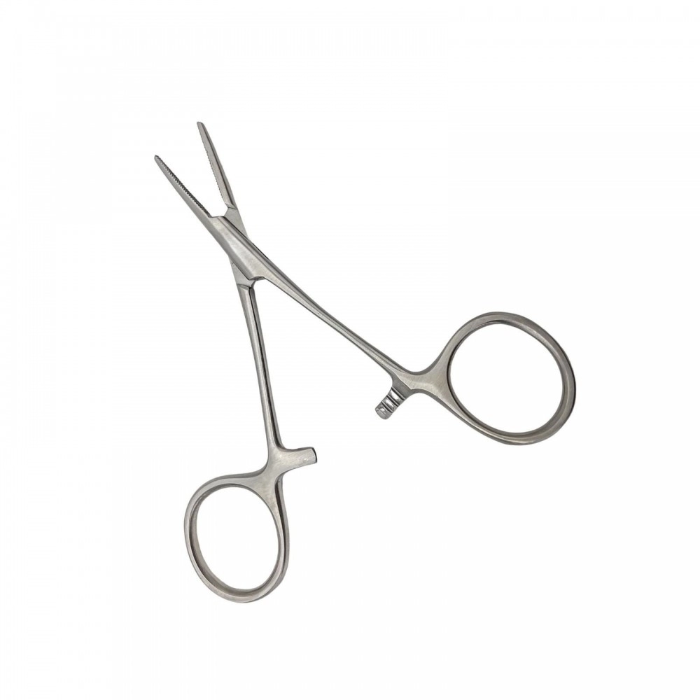 Conta com sistema de trava (cremalheira), que permite manter a pinça fechada com pressão controlada, garantindo segurança durante o procedimento. Seu design anatômico proporciona manuseio confortável e maior precisão nos movimentos, sendo amplamente utilizada em cirurgias médicas, veterinárias e procedimentos ambulatoriais.