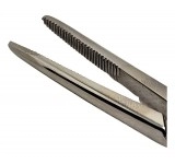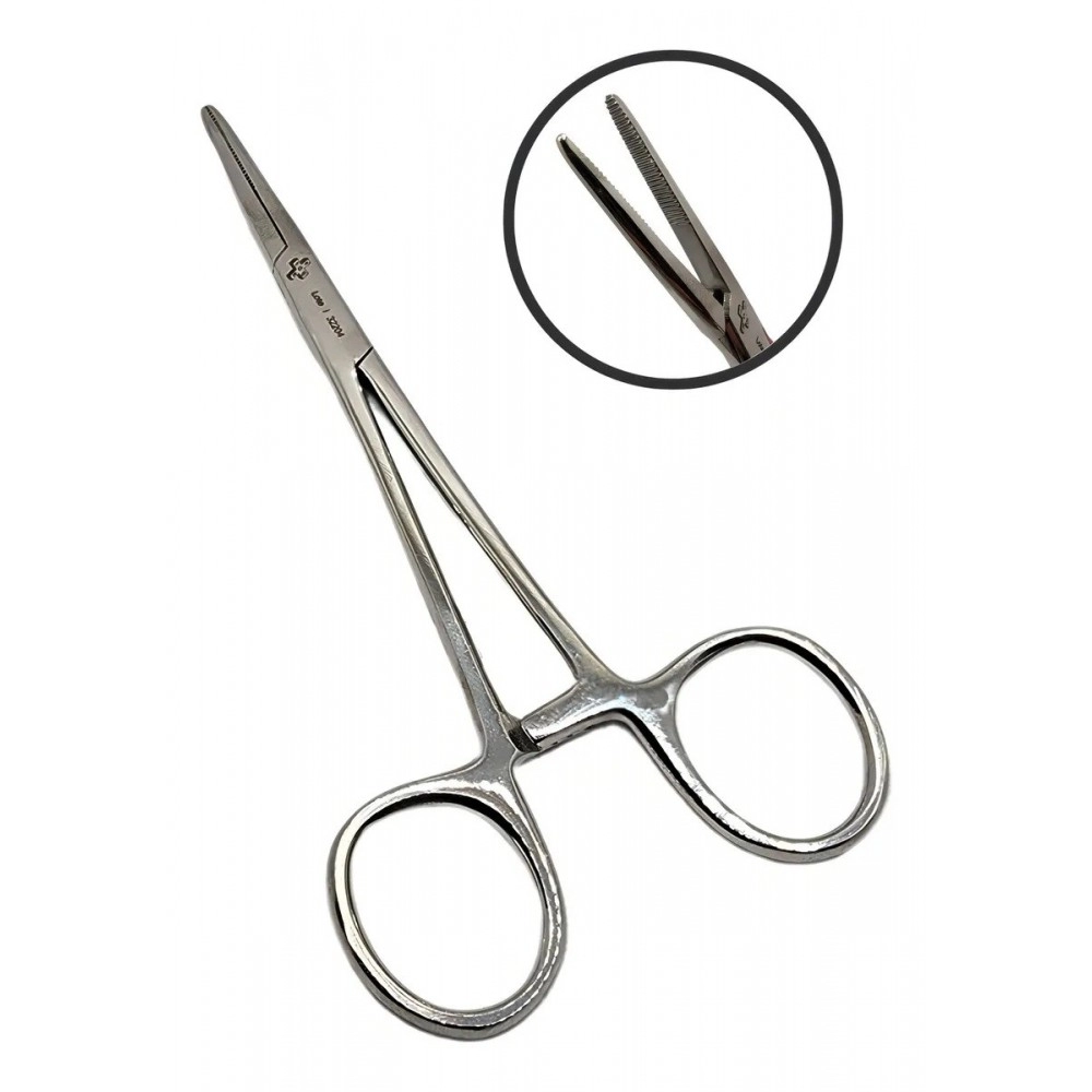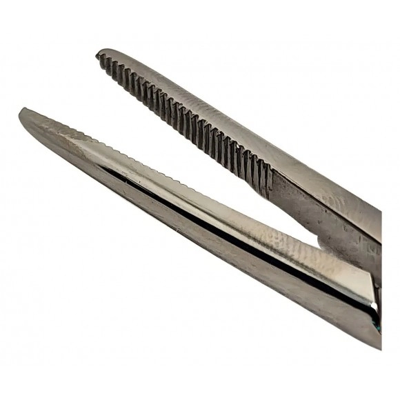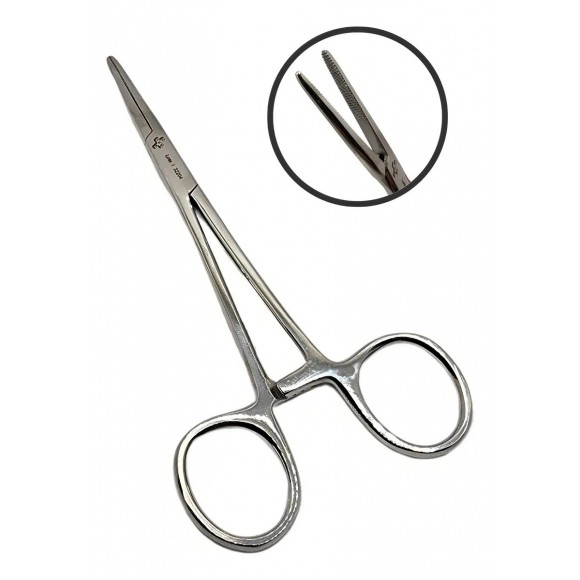 Fabricada em aço inoxidável de alta qualidade, apresenta excelente resistência, durabilidade e fácil esterilização. Seu mecanismo com cremalheira proporciona travamento seguro, permitindo manter a pressão adequada sem esforço contínuo. O formato reto facilita a visualização e o alcance em diferentes tipos de procedimentos.