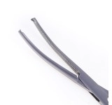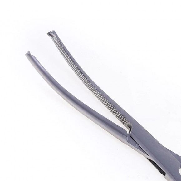 Fabricada em aço inoxidável de alta qualidade, a pinça apresenta elevada resistência à corrosão, durabilidade prolongada e excelente desempenho mesmo após repetidos processos de esterilização. Seu formato curvo facilita o acesso a regiões mais profundas, enquanto as serrilhas transversais com dente na ponta garantem uma preensão firme e segura, reduzindo o risco de deslizamento.