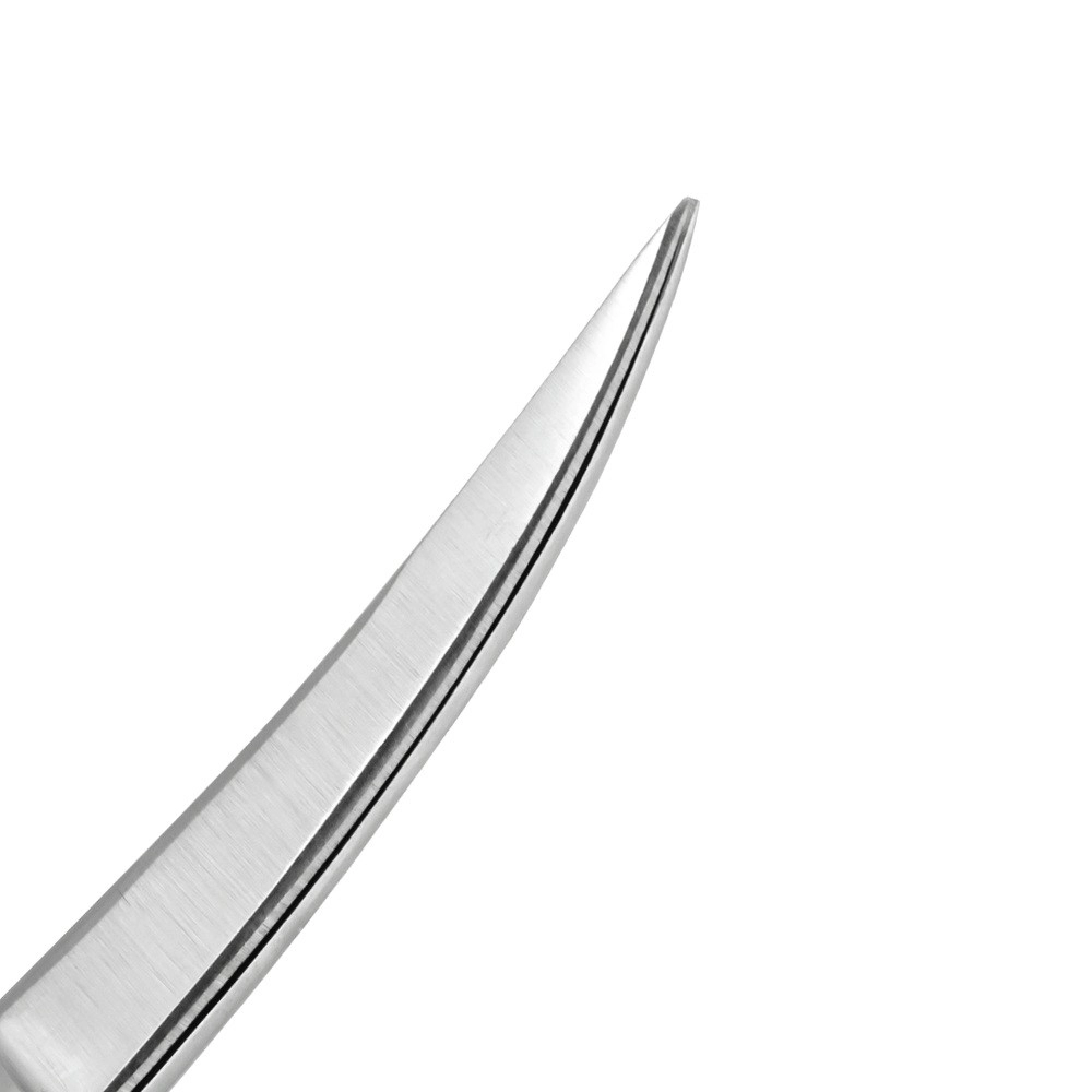 Fabricada em aço inoxidável de alta qualidade, oferece elevada resistência à corrosão, durabilidade e fácil higienização. Seu formato curvo aliado às pontas finas permite acesso facilitado a áreas mais delicadas, garantindo cortes precisos e maior segurança durante o procedimento. Com 15 cm de comprimento, proporciona excelente ergonomia e firmeza no manuseio.