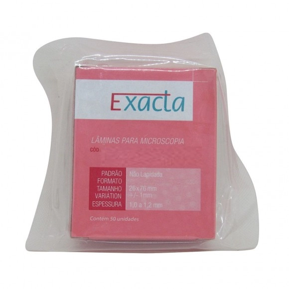 Lâmina para Microscópio Lisa Não Lapidada 26 x 76mm Caixa com 50 Unidades – Exacta