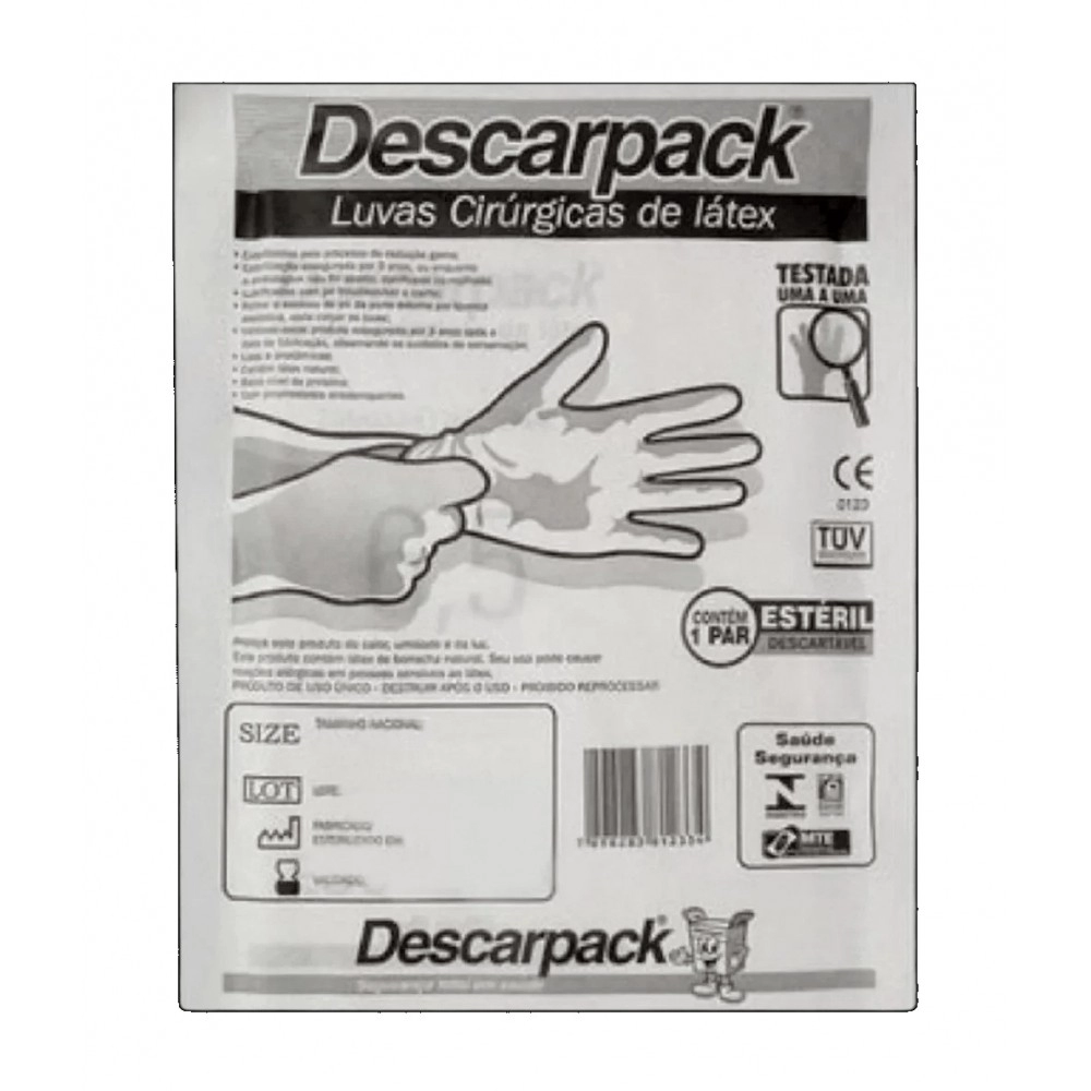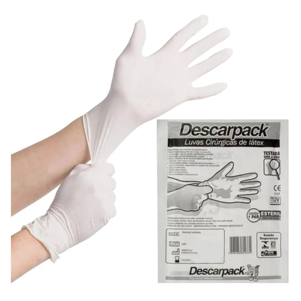 - Par de Luvas Cirúrgicas de Látex com Pó – Tamanho 7.0 – Descarpack