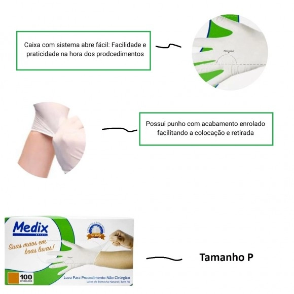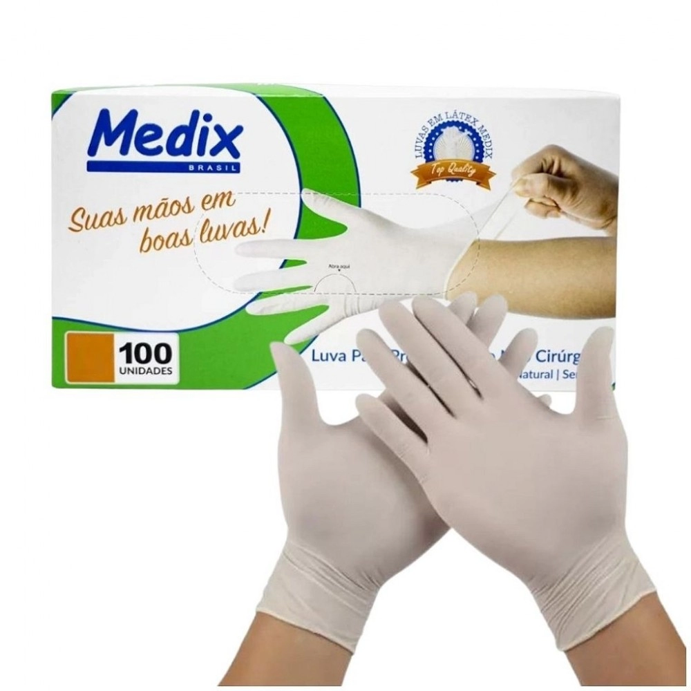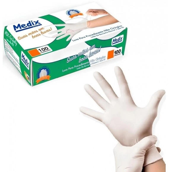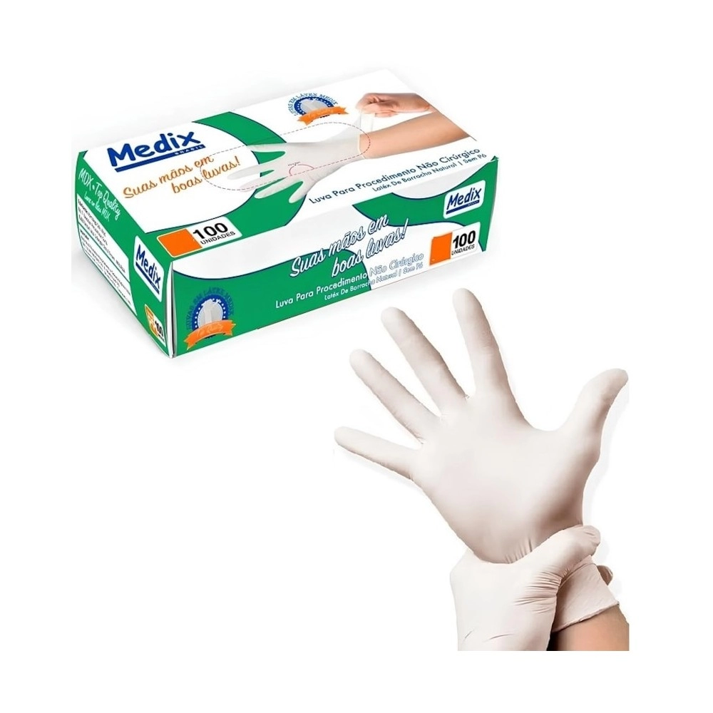• 1 Caixa com 100 Luvas Descartáveis para Procedimentos Sem Pó Tamanho P – Medix