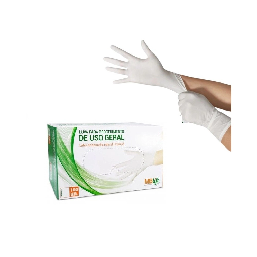 • Caixa com 100 Luvas Látex Para Procedimentos Não Cirúrgicos com Pó Tamanho G – MB Life