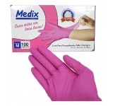 Luva Nitrilo Rosa para Procedimentos Não Cirúrgicos Sem Pó Tamanho M – Caixa com 100 Unidades – Medix