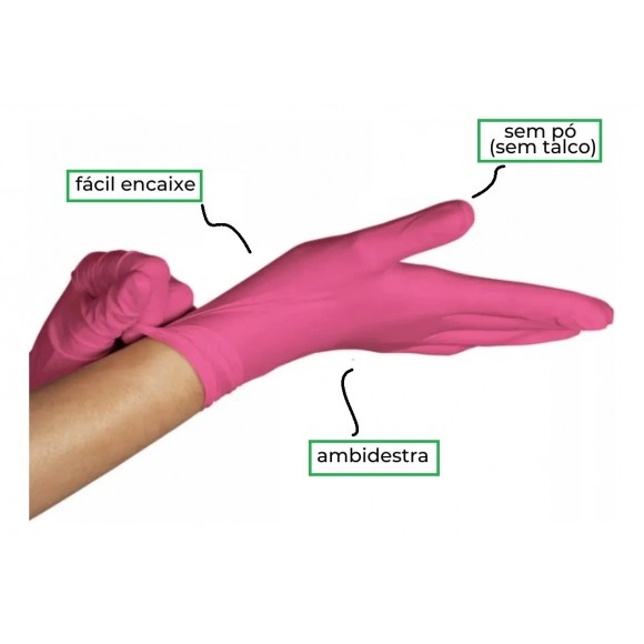 - Caixa com 100 unidades de Luva Nitrilo Rosa Sem Pó Tamanho M – Medix