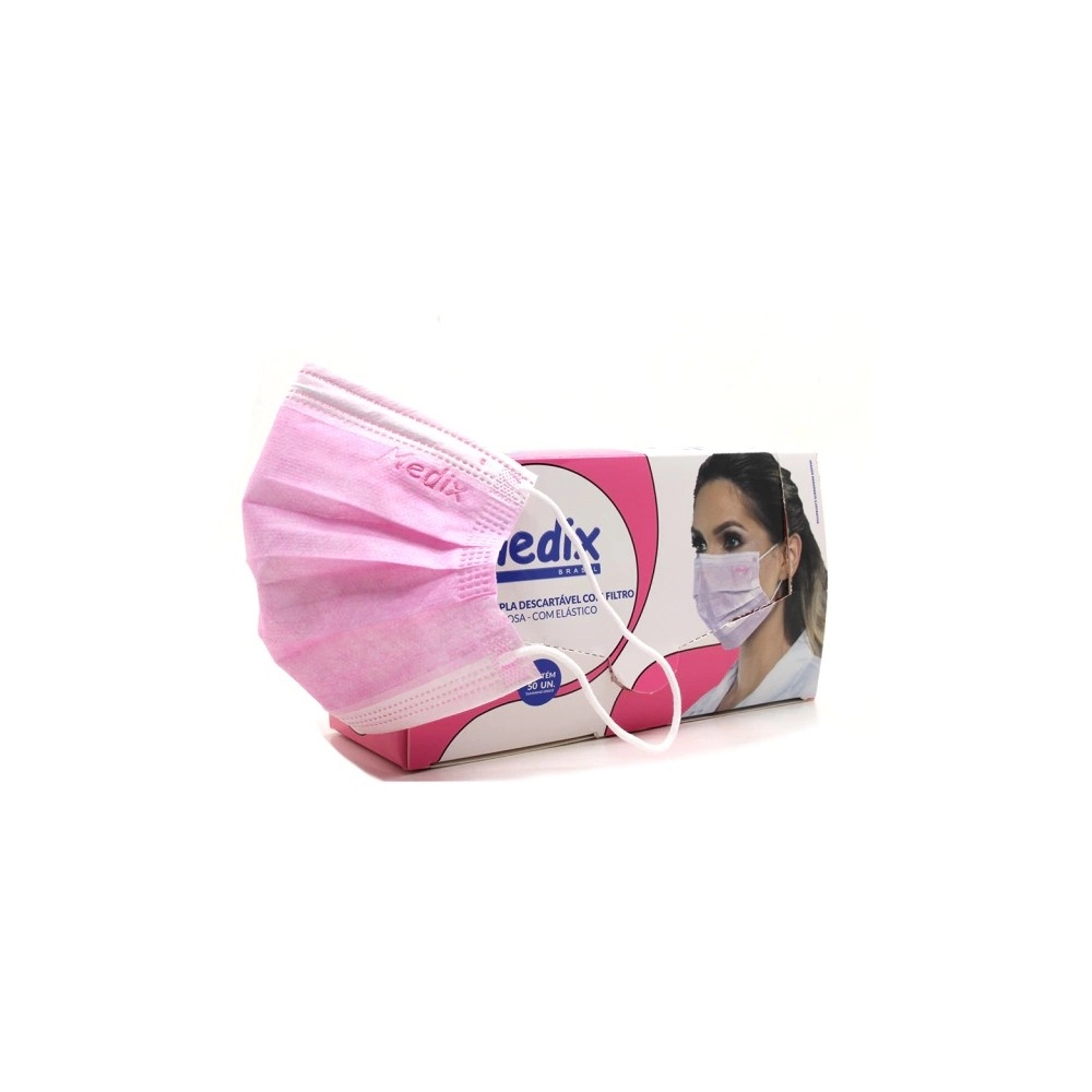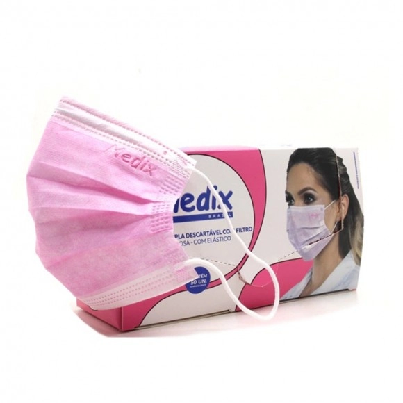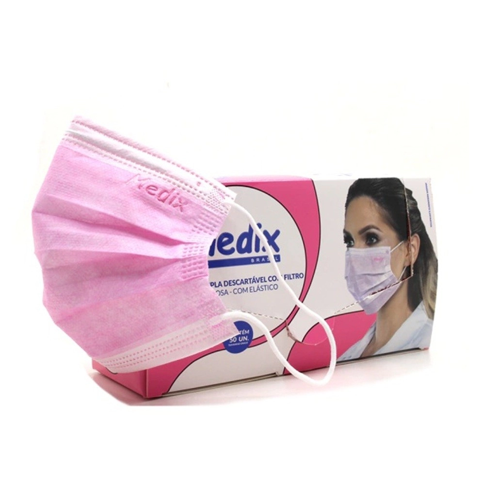 • 50 Máscaras Descartáveis com Elástico Tripla Camada Rosa – Medix