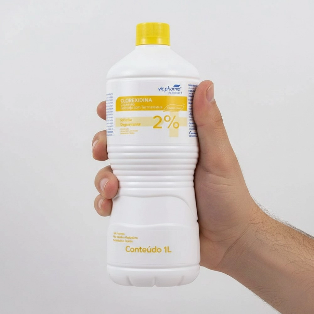 - frasco de Gliconato de Clorexidina 2% Degermante Antisséptico – 1L – Vic Pharma