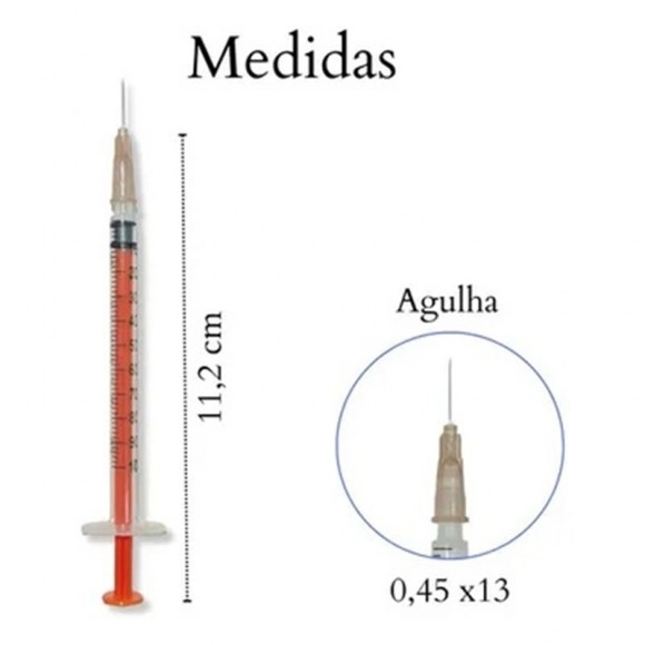 - 1 Seringa de 1mL com agulha 13x4,5mm - SR