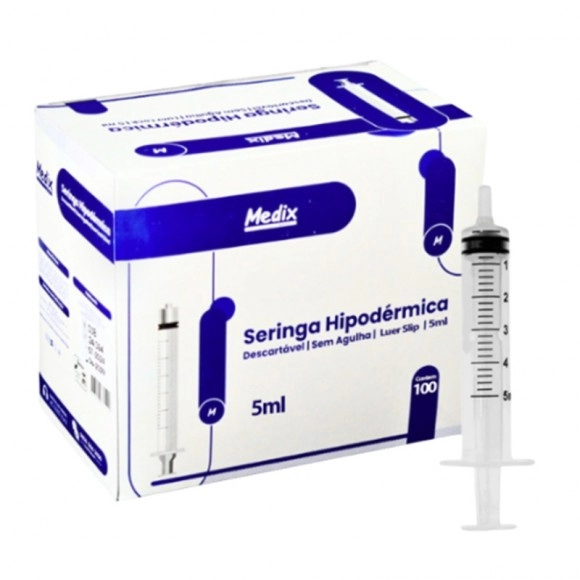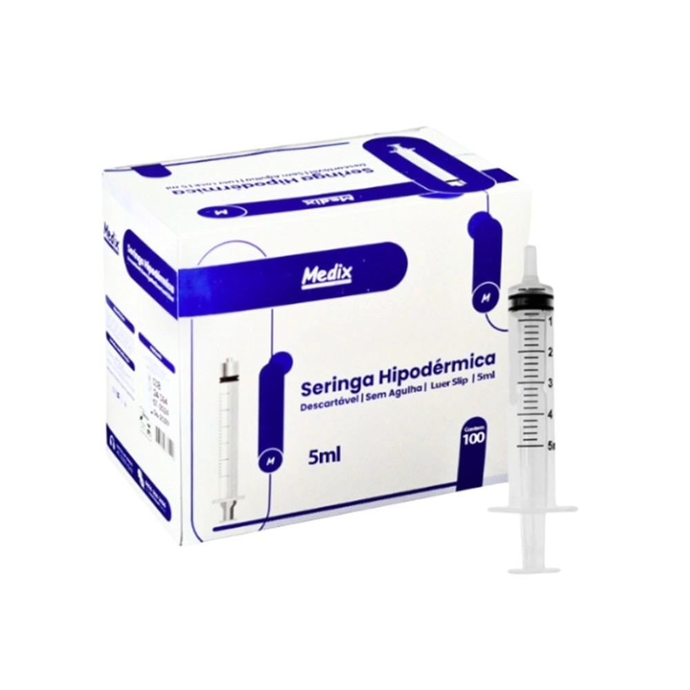 • 1 Seringa Descartável 5mL Luer Slip Sem Agulha – Medix